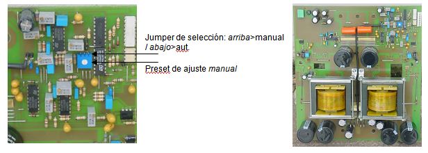 La tensión de referencia ajustable se obtiene en el mismo módulo (variando un preset con el jumper selector en modo “manual” ) o a través del PWM entregado por el módulo de control.
