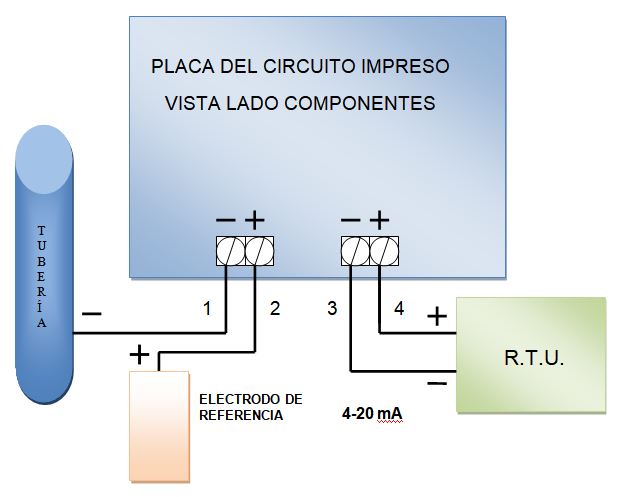 Es un dispositivo que opera como interfaz, especialmente diseñado para implementar telemedición y/o telecomando a sistemas que poseen entradas analógicas de lazo cerrado de corriente ( 4 a 20 mA), para uso específico de sensado de potencial de electrodo de referencia en Protección Catódica de tuberías y tanques.